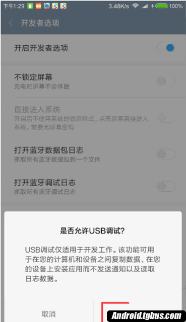 刷機ROM下載完畢之后,就可以通過刷機操作MIUI開發版刷入紅米Pro手機中,那么用戶可以借助“奇兔刷機”工具來實現,打開紅米Pro手機USB調試開關:依次進入“設置”-“關于手機”界面,連續點擊“Android版本號”即可開啟“開發者選項”界面,并在此界面中開啟“USB調試”開關。