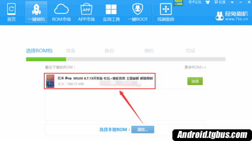 將紅米Pro通過USB數據線與電腦進行連接,運行“奇兔刷機”工具,待紅米Pro被成功識別后,切換到“一鍵刷機”選項卡,點擊“瀏覽”按鈕以選擇本地刷機包。