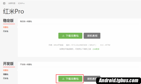 1.進入紅米Pro刷機包專區(點擊進入)下載對應的卡刷包;(注意選擇官方卡刷包)