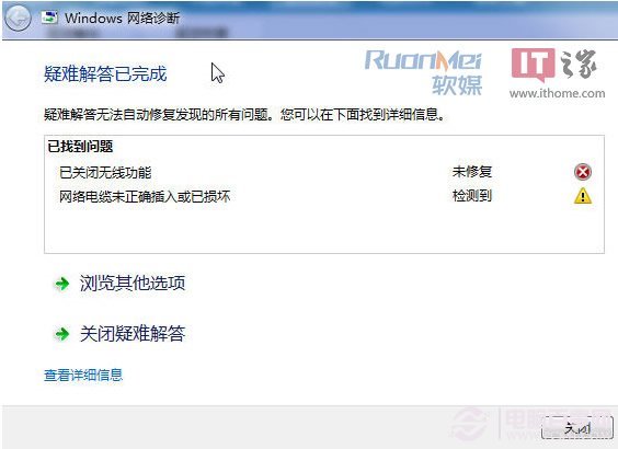 這時候就會彈出向導,進行自動診斷。有的情況它會自動進行修復,部分的問題利用Windows診斷就可以解決。