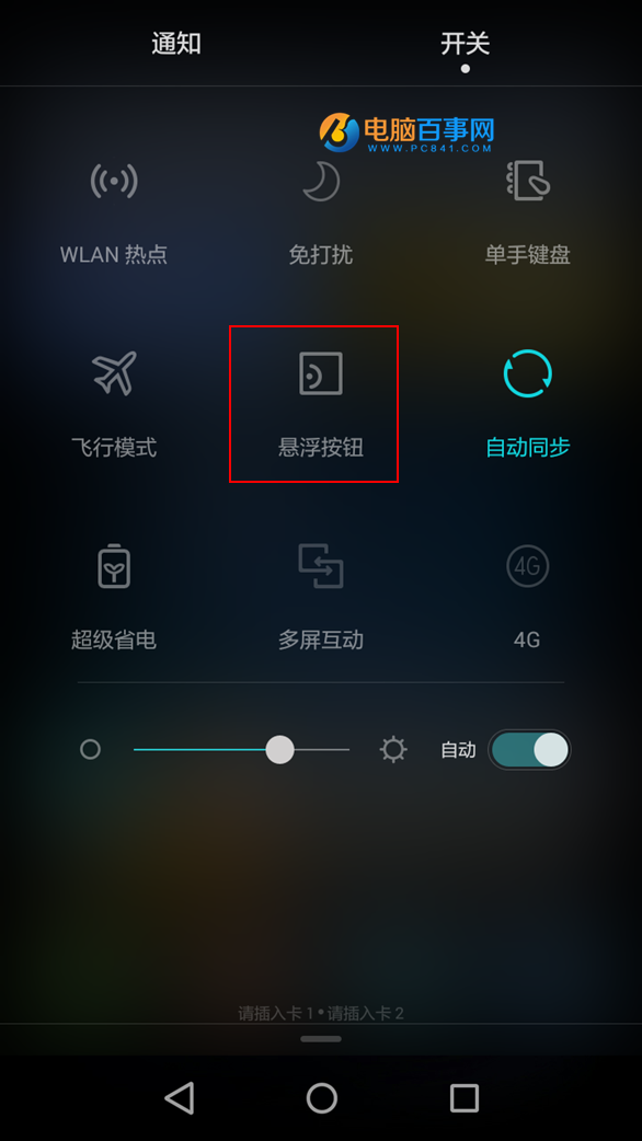 用手指往下滑動調出下拉菜單,便可看到【懸浮按鈕】,點擊一下便可開啟,如下圖所示: