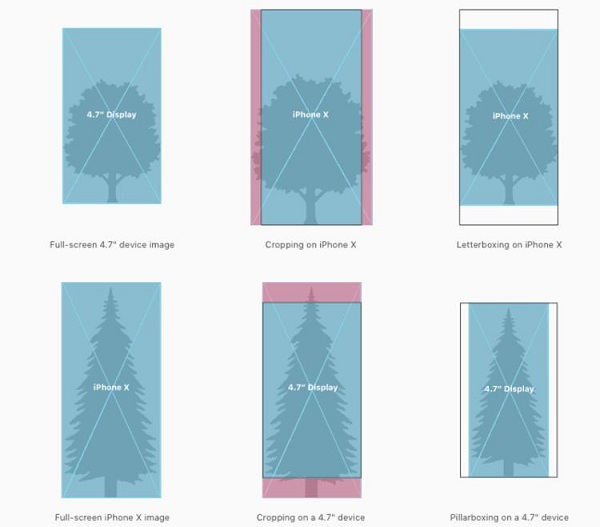 蘋果給出的全屏顯示下、各個機型顯示效果的示意圖