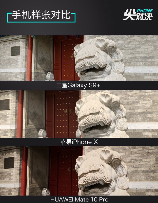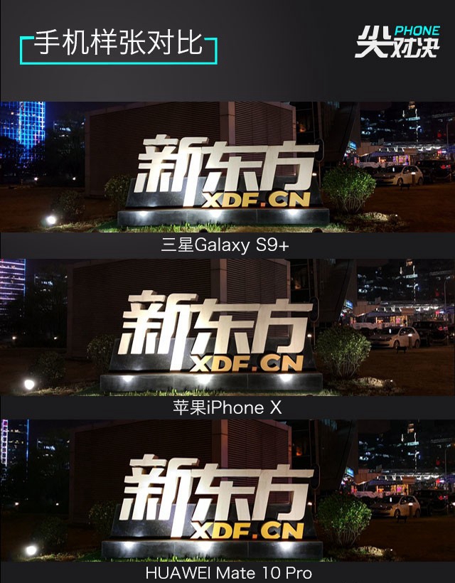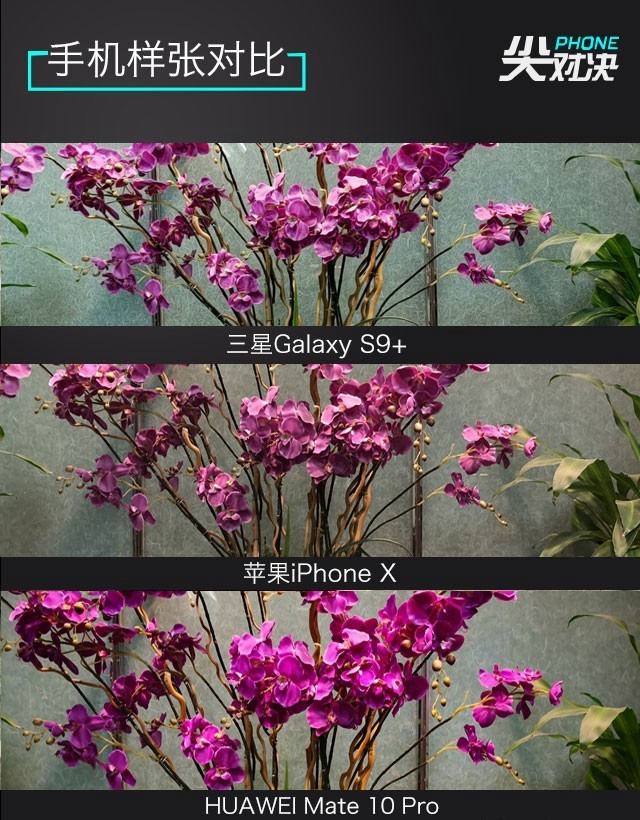 從樣張可以看出,三星Galaxy S9+的夜拍表現最為突出,噪點把控最好;HUAWEI Mate 10 Pro的色彩和細節把控最為到位,出片略顯艷麗;就綜合表現看,蘋果iPhone X的實拍表現也非常出色,但相對另外兩款手機優勢并不明顯。
