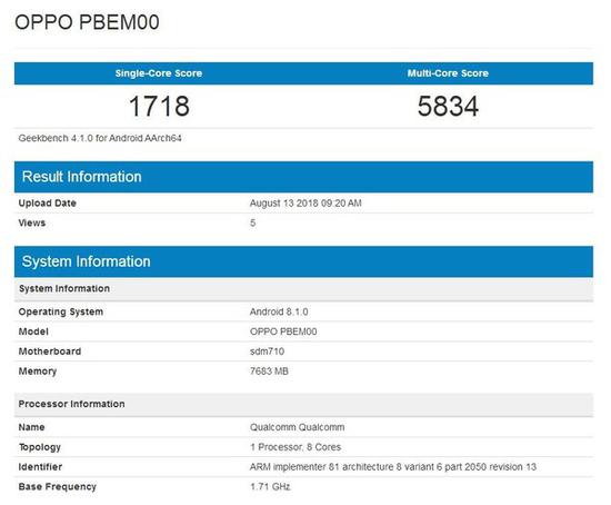 OPPO R17 Pro跑分曝光:搭載驍龍710+內(nèi)存8GB性能組合