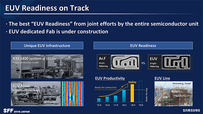 根據三星的說法,他們在韓國華城的S3 Line生產線上部署了ASML的NXE3400 EUV光刻機,這條生產線原本是用于10nm工藝的,現在已經被改造,據說現在的EUV產能已經達到了大規模生產的標準。
