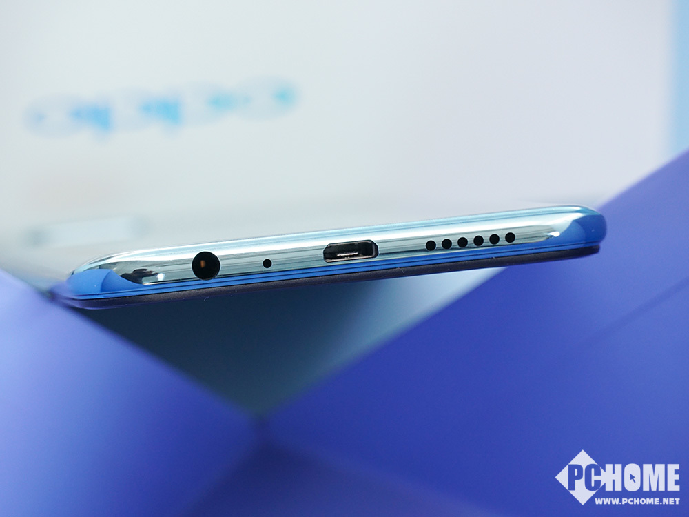 值得注意的是,OPPO R15x采用了Micro USB的接口,底部保留了3.5mm的耳機插孔,左右兩側分別是麥克風和揚聲器的開孔。