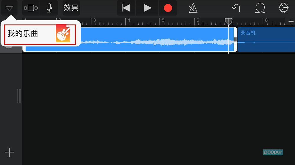 點擊左上角下拉菜單,并且選擇【我的樂曲】,音樂會自動保存成特定聲音文件。