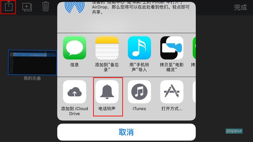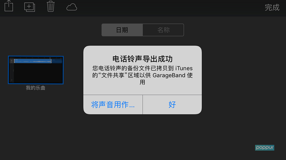 長按文件,之后點擊左上角的導出按鍵。選擇【電話鈴聲】-【導出】-【將聲音作為標準電話鈴聲】。