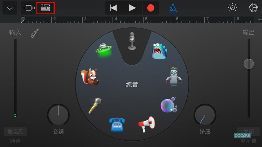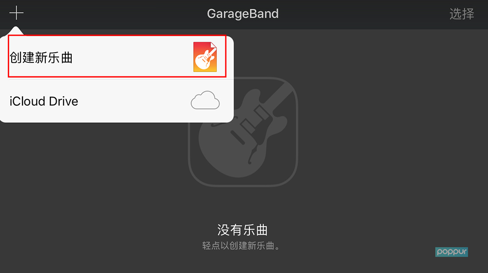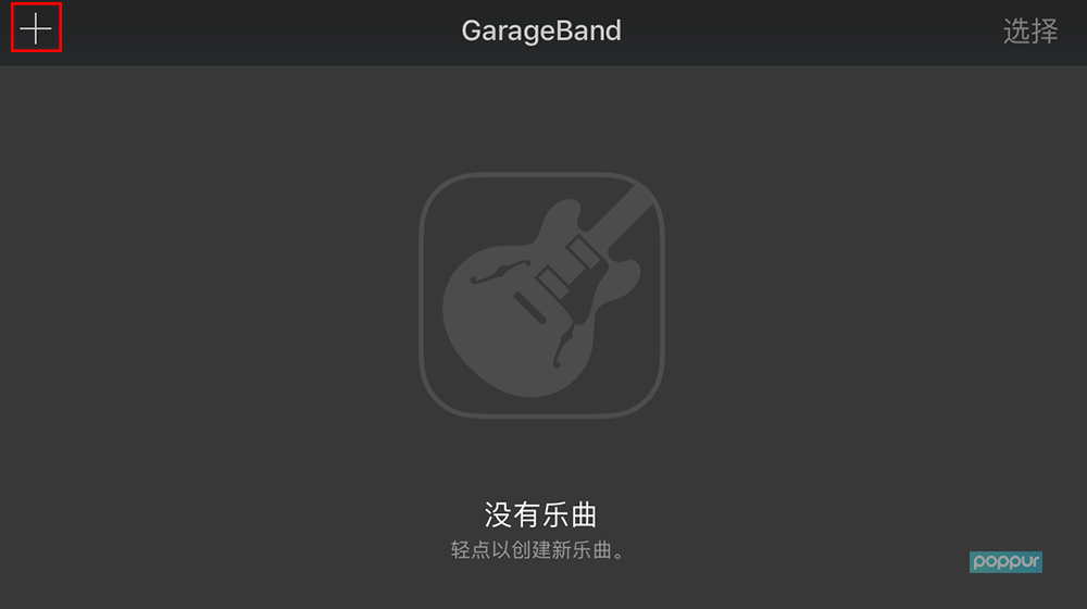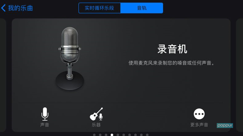 打開GarageBand,同時點擊左上角【+】號創建新樂曲,之后選擇錄音機選項。