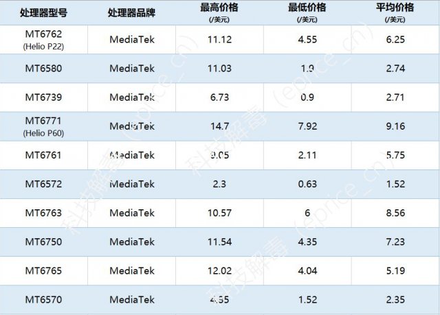 手機性能的強弱一直備受關注,主要取決于處理器的性能,而處理器的定價影響著智能手機產品的定價。因此,處理器起著至關重要的作用。日前,旭日大數據發(fā)布了一組2018年11月移動處理器定價表格,市面上熱門的安卓手機處理器的價格都被曝光。