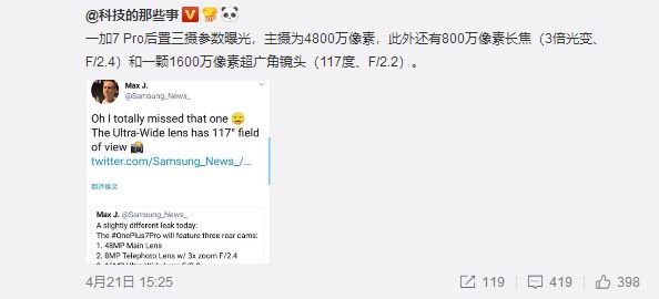 按照目前各大廠商旗艦新機的發布進度,應該也快到了一加新旗艦亮相的時候了。繼此前多次曝光一加7渲染圖之后,現在有最新消息,國外爆料人分享了一加7 Pro后置三攝的具體參數。