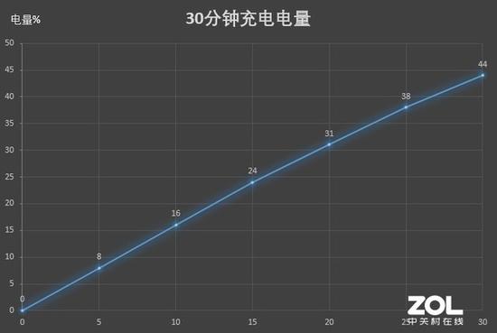 為了應對大電池的充電煩惱,iQOO Neo配備了10V/2.25A的22.5W半壓閃充技術,經過30分鐘的充電測試,電量可達到44%,充滿一部iQOO Neo也僅需要一個半小時左右,充電快速的同時還兼顧的溫度控制,做到快充不燙手。