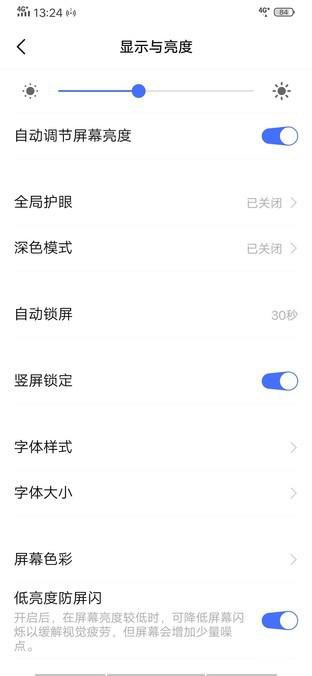 iQOO Neo系統中還加入了全新的低亮度防屏閃功能(類DC調光),該技術是通過Dimlayer蒙版算法以及抖動插值算法,來擬合實現調節屏幕亮度的效果。開啟低亮度防屏閃功能后,能夠在屏幕亮度較低時,降低屏幕的閃爍頻率來緩解視覺疲勞。
