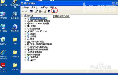 2、卸載以后 ,選取圖中的 掃描硬件改動(dòng),重裝網(wǎng)卡驅(qū)動(dòng)