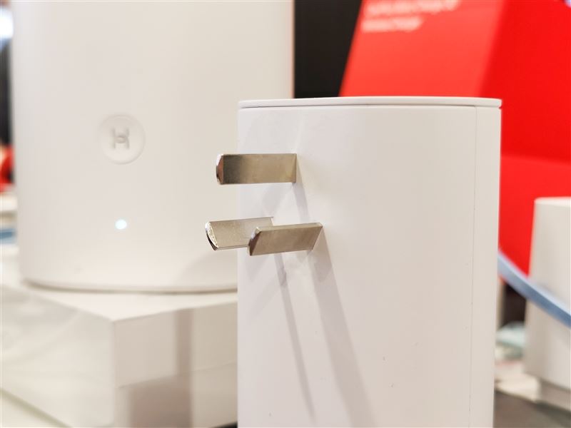子路由上搭配三腳插頭 直接插在插座上就可以實現電力線連接