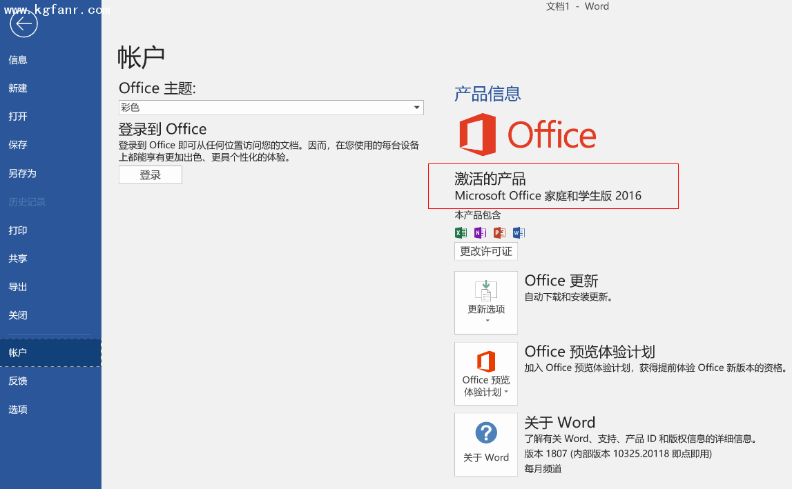 6. 至此您會發(fā)現(xiàn),已經(jīng)激活完成了。您可以點(diǎn)擊“文件 > 帳戶”,查看 Office 產(chǎn)品激活信息,在“激活的產(chǎn)品”下面哦~