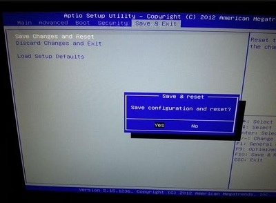 4、完成上述設置后,切換到“save & exit”選項卡下,繼續按Enter鍵執行默認的“save changes and reset”保存,如下圖所示: