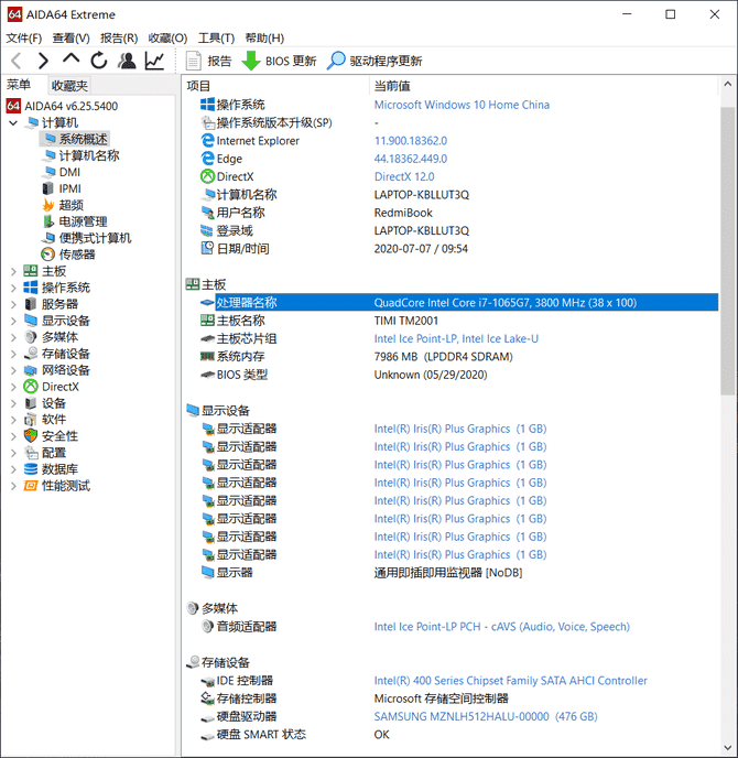 本次測試的 RedmiBook 14 Ⅱ搭載了Intel Core i7-1065G7處理器,這款處理器采用改進的10nm工藝制造,4核心8線程,睿頻最高可至3.9GHz。相比第八代處理器有非常明顯的提升,圖形性能提升82%,視頻編輯性能提升102%。充分滿足用戶的辦公、設計、游戲、影音娛樂等多場景需求,這款處理器自今年推出之后,一直都是移動便攜本中的高配之選。