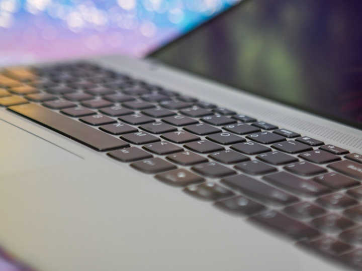 C面雖然為塑料材質,但采用了仿絨面效果,觸感柔軟舒適。C面鍵盤上部布置了經過杜比音效認證的雙揚聲器,在進行影音娛樂的時候可以帶來更好的視聽效果。另外還配備了電源指紋二合一按鍵,輕觸即可快速喚醒系統(tǒng)進入桌面。