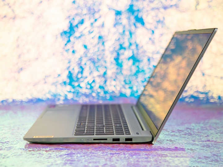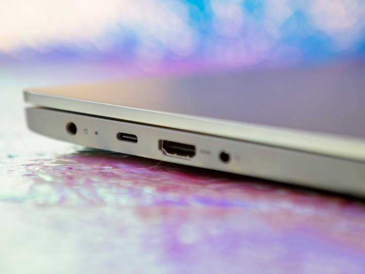 擴展接口方面,聯(lián)想小新15 2020銳龍版機身右側配備了兩個USB3.0和讀卡器接口;機身左側依次為電源插孔、全功能USB-Type C接口、HDMI 1.4接口、3.5mm耳機麥克風接口,功能與數量還是比較豐富的。