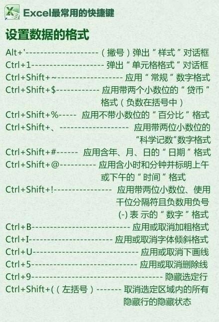 4、Excel設置數據的格式快捷鍵
