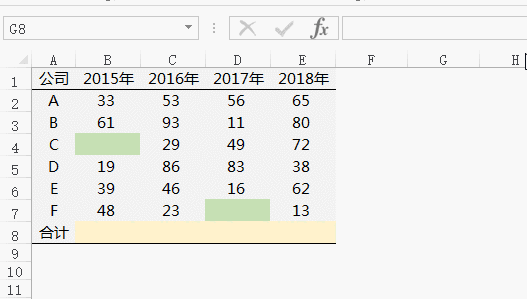 特別注意:如果對含空單元格的單表設置求和公式時,千萬不要選下面的求和行按Alt + =,因為這樣設置公式是錯誤的: