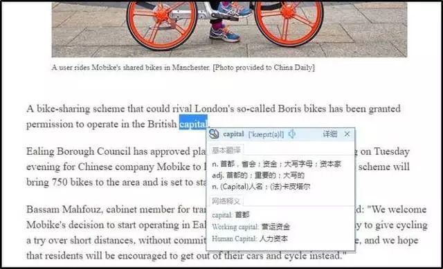 網(wǎng)絡(luò)上有一些工具,可以實現(xiàn)劃詞翻譯的效果(鼠標(biāo)選中單詞,就能翻譯出來),特別方便。