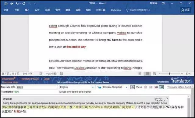和在網(wǎng)頁上翻譯相比,它最大的優(yōu)點是可以保持文檔的原有格式。