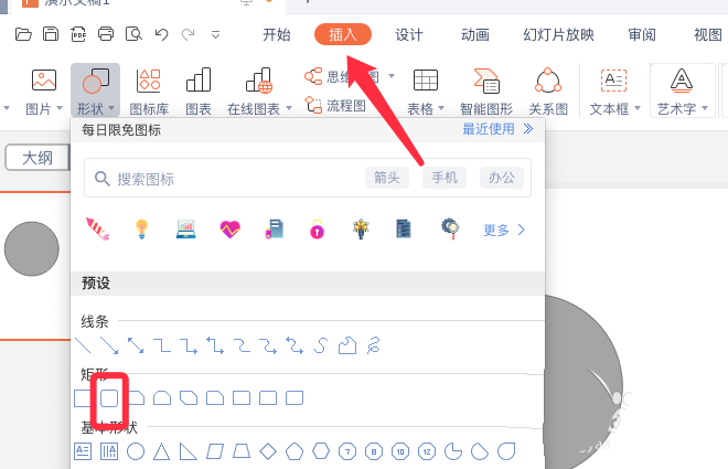 2、插入形狀,選擇圓角矩形,插入一個圓角矩形。