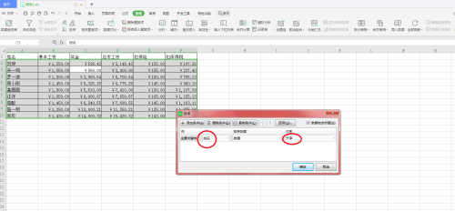 3、單擊“排序”按鈕,彈出“排序”對(duì)話框。