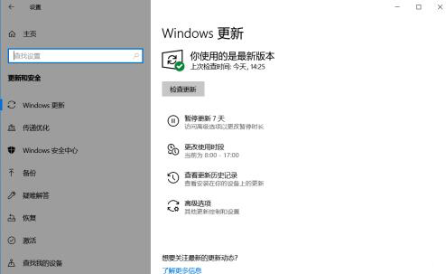 進入 設置 - Windows 設置 - 更新和安全 - Windows 更新,點擊:檢查更新;