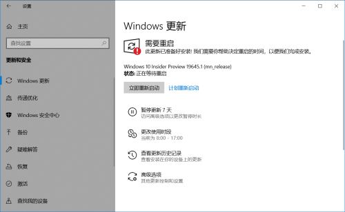 6月11日,微軟向快速通道用戶推送了 Windows 10 Insider Preview 19645.1 (mn_release) 系統更新。
