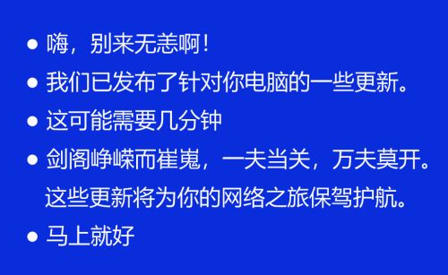 電腦第 2 次重啟后,進行系統更新的后續操作,共經過五個界面: