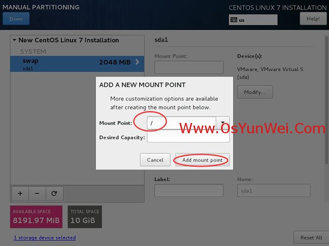 新掛載點(diǎn)使用以下分區(qū)方案:標(biāo)準(zhǔn)Standard Partition