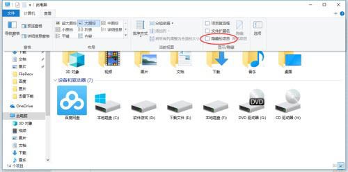 點擊查看以后我們就可以在最后面看到一個隱藏的項目的選項,我們在它前面打上勾。