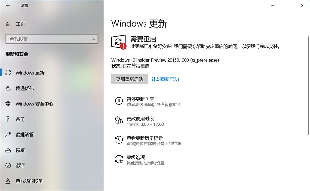 ◆ 更新Windows 10 Insider Preview 20150.1000 (rs_prerelease)系統