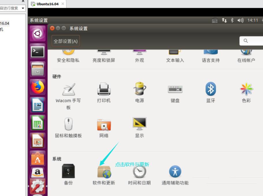 1、打開Ubuntu之后,點擊設置,選擇系統設置