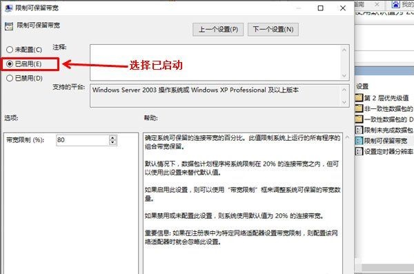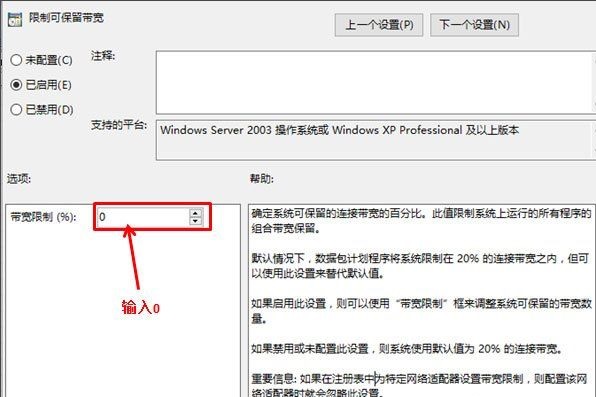 4、選擇已啟用,激活下面的寬帶限制輸入框;