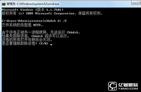 3、可能會有提示“是否要強制卸載該卷?(Y/N)”,輸入Y并回車即可。
