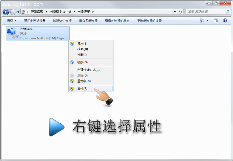 ▲右鍵點擊本地連接(Windows 8及以上系統為以太網)選擇屬性