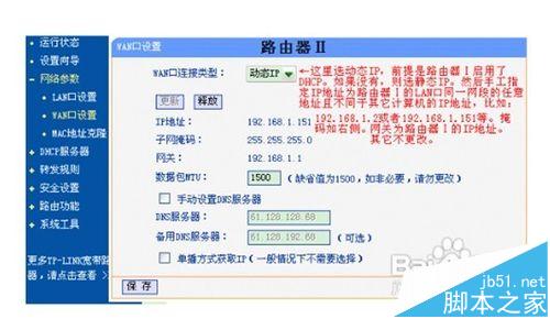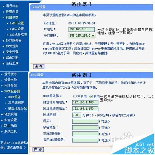 可能要對兩個路由器進(jìn)行設(shè)置。在這里將原來的路由器命名為路由器Ⅰ。后加的路由器命名為路由器Ⅱ。要設(shè)置哪個路由器,則使用計(jì)算機(jī)直接連接那個路由器,同時,最好將其余不相關(guān)的網(wǎng)線暫時從該路由器上拆除。路由器Ⅰ的設(shè)置參考下圖: