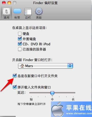 在蘋果系統(tǒng)里,默認(rèn)設(shè)定是雙擊一個文件夾后,它將在同一窗口內(nèi)把此文件夾打開,我們將不能看到原窗口的內(nèi)容,除非你點擊后退按鈕。