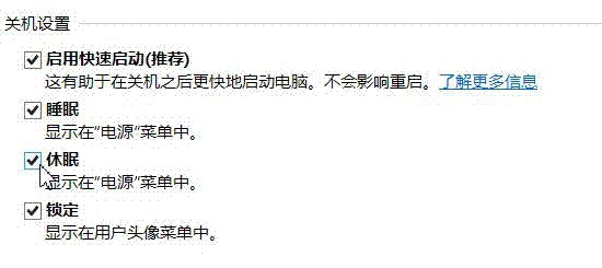 修改之后,無論是系統電源選項,還是按Alt + F4,都已增加“休眠”選項了。