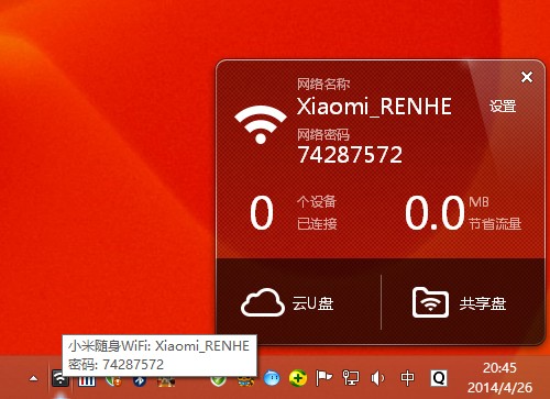 驅(qū)動程序安裝完成,小米隨身wifi的名稱和密碼都直觀顯示出來了。