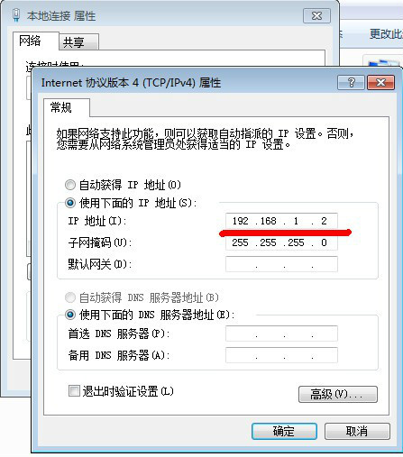 共享到本地連接后把本地連接改成自己喜歡的ip,但是不要和路由一樣,我的路由網(wǎng)關(guān)地址是192.168.1.1 那么我就把本地連接搞成192.168.1.2