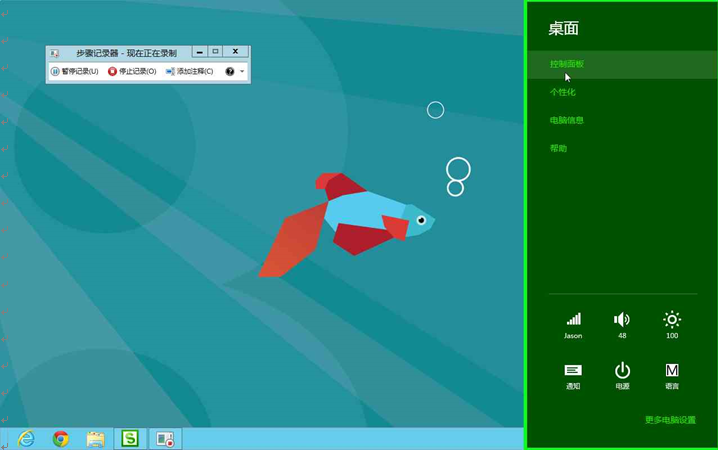 1、鼠標(biāo)移到屏幕右下角,右方會(huì)出現(xiàn)如圖所示選項(xiàng);
