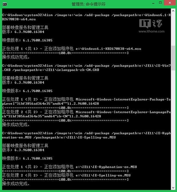 dism /image:e:wim /add-package /packagepath:e:IE11IE-Win7.CAB /packagepath:e:IE11ielangpack-zh-CN.CAB
