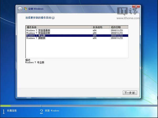 ▲安裝過程中,用戶可以手動選擇四個版本的Win7系統