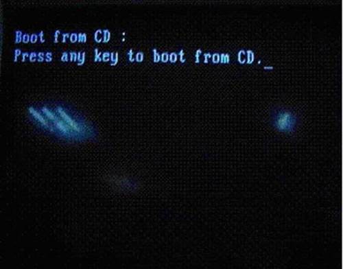 2. 選擇光驅(qū),幾秒后,屏幕上會出現(xiàn)“Press any key to boot from cd…”的字樣,此時需要按下鍵盤上的任意鍵以繼續(xù)光驅(qū)引導(dǎo)。如下圖所示: