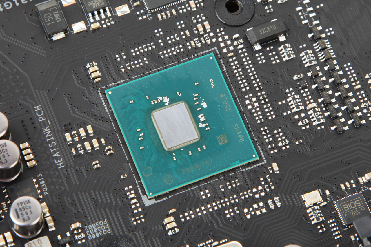 拆下SATA 3.0接口后面的PCH裝甲,我們可以看到全新的Intel Z390芯片組采用14nm工藝,向下兼容第八代酷睿處理器,有著更強的超頻性能,配合華碩最新優化的AI智能超頻,可聯動機身內部所有傳感器,為不同型號的處理器帶來不同的超頻模式,對于不鎖頻的CPU有著更強的支持,全面支持第九代酷睿處理器。